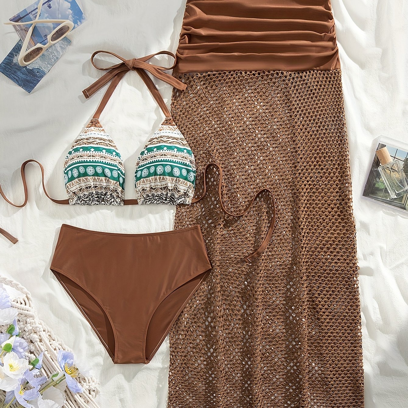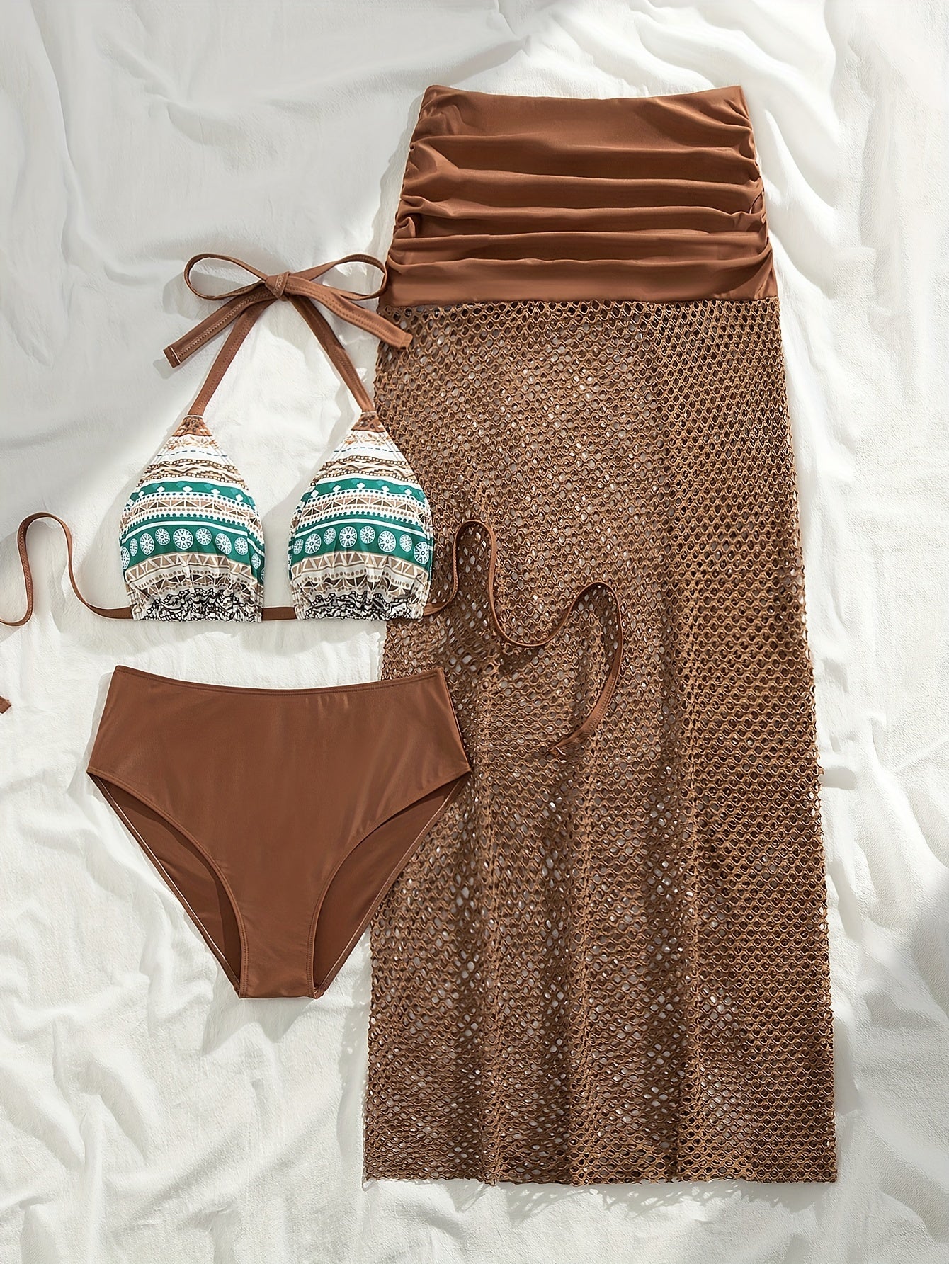 O Conjunto de Biquíni Elegante Plus-Size 3 Peças é a escolha perfeita para quem deseja unir estilo, conforto e sofisticação nos dias de praia ou piscina. Ele inclui: