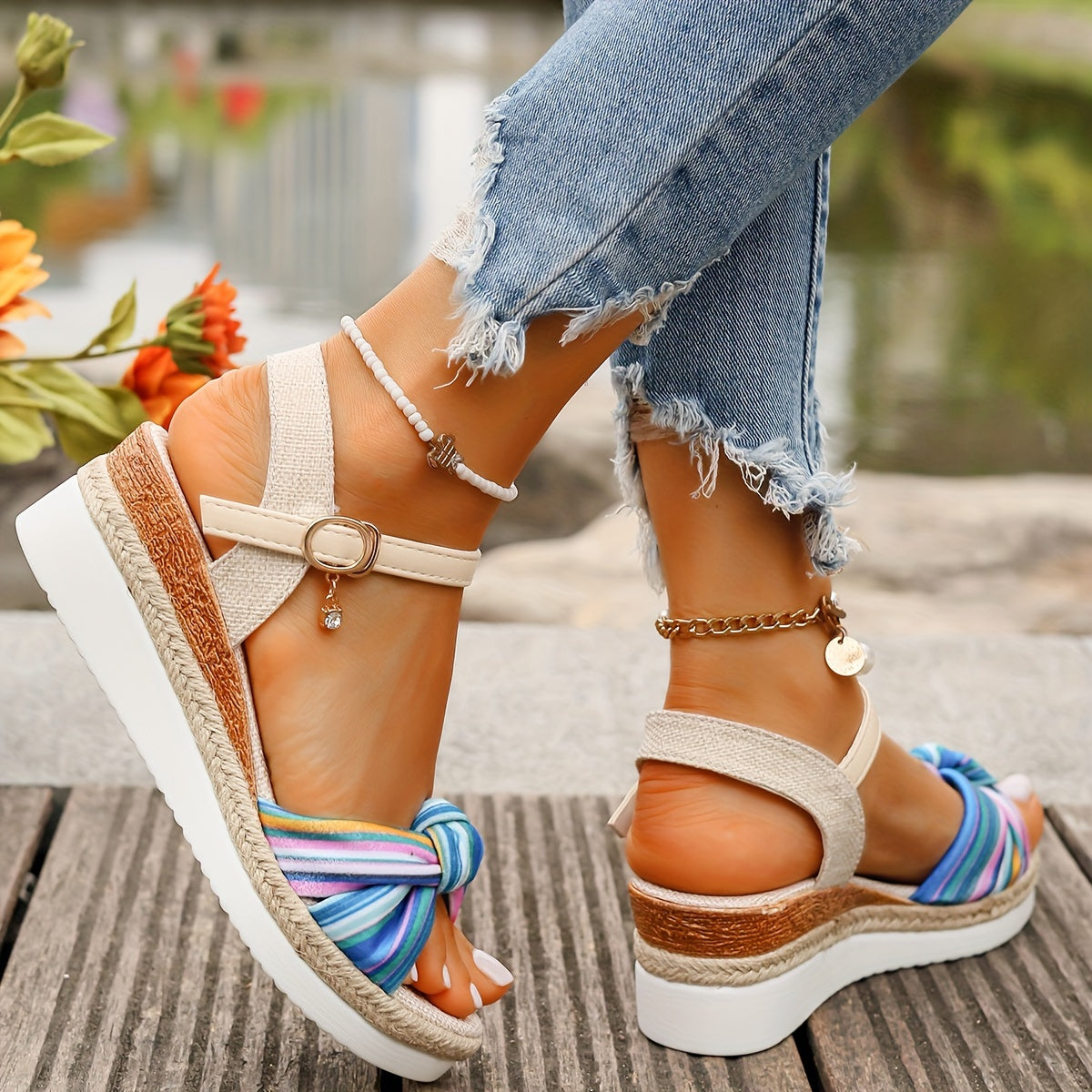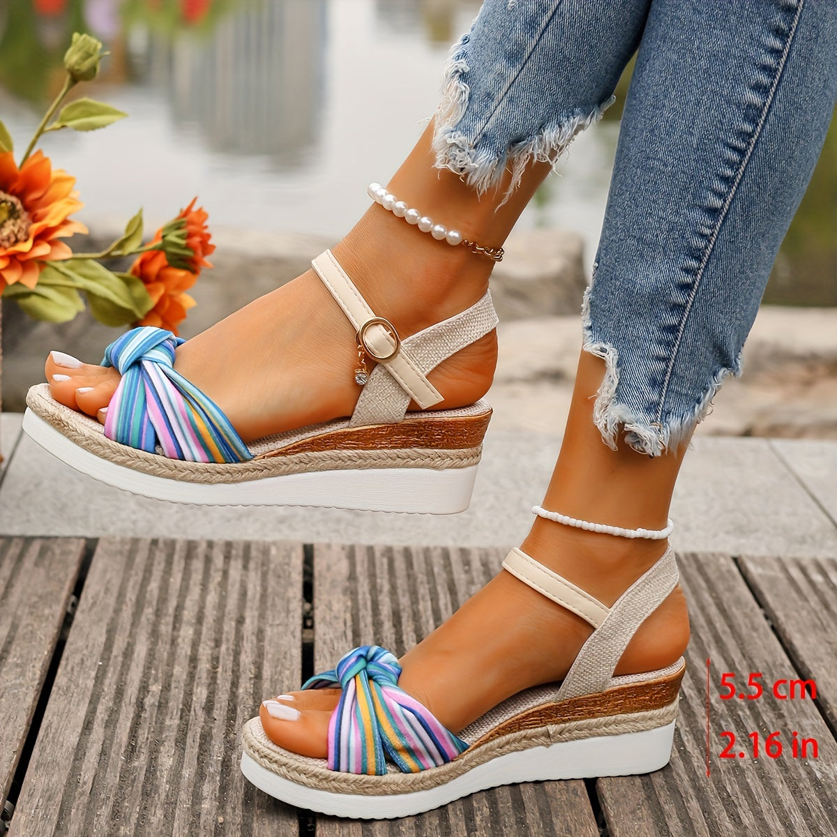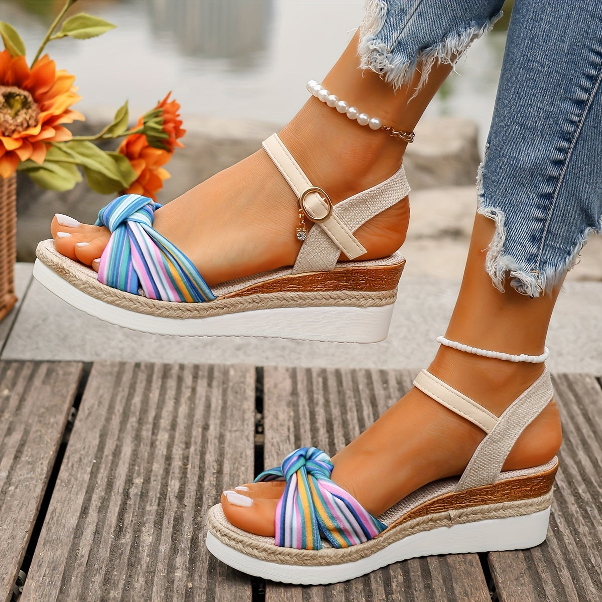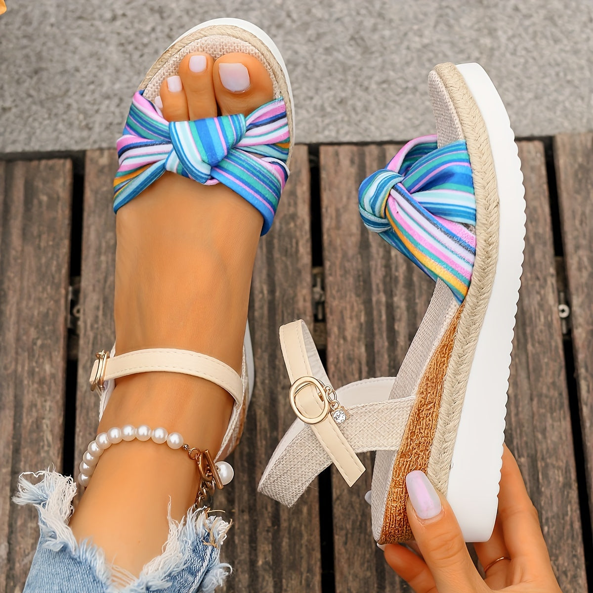 As Sandálias de Salto Grosso Femininas são perfeitas para quem busca conforto e estilo no verão. Com parte superior em tecido listrado, apresentam detalhe de laço charmoso e tira no tornozelo que garante firmeza e elegância. O salto plataforma médio oferece estabilidade, tornando-as ideais para praia, passeios ou ocasiões casuais.