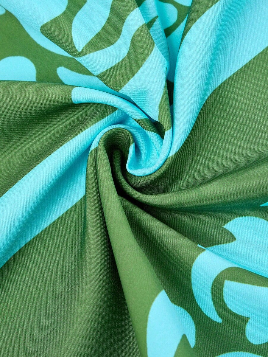 Estilo Versátil: A estampa geométrica e o comprimento médio tornam este vestido uma escolha sofisticada para diferentes ocasiões especiais.